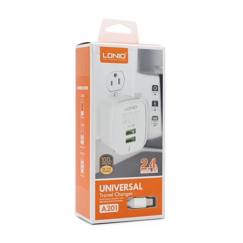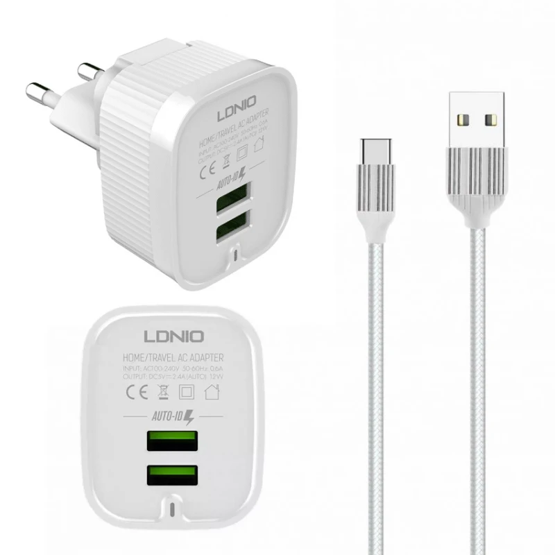 Kucni punjac LDNIO A201 2xUSB 2.4A Type C beli